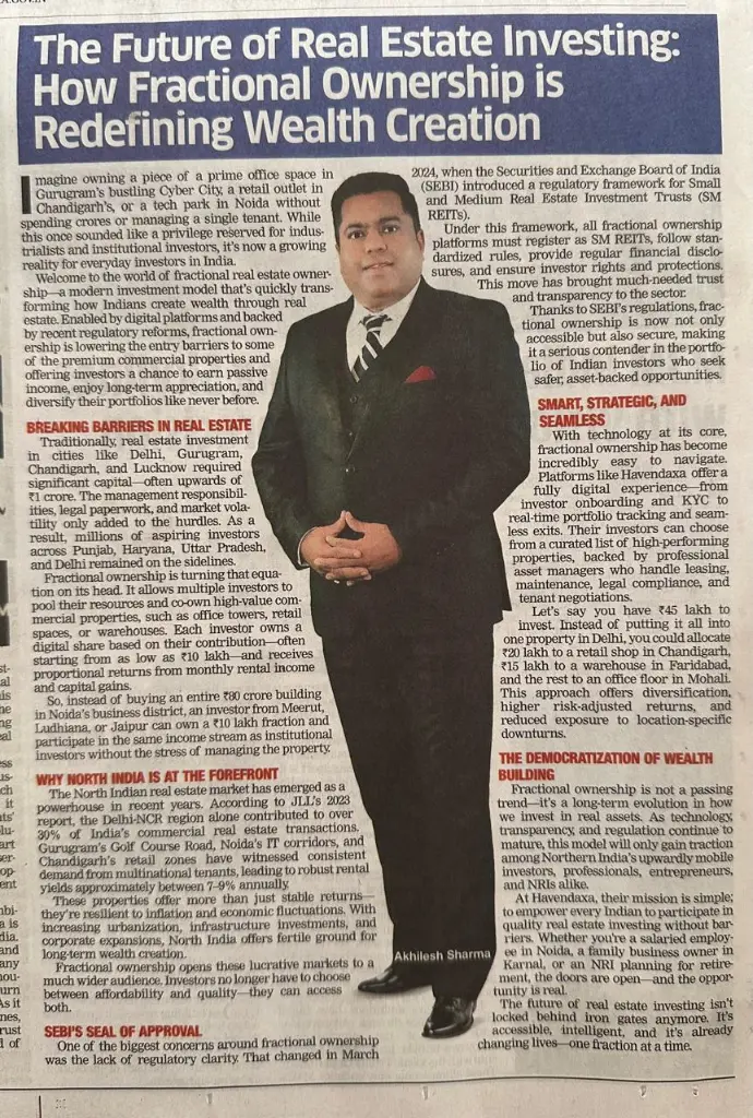 Recent article from a leading business daily on how fractional real estate is redefining wealth creation in India.